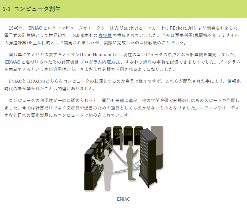 コンピュータの動作の仕組み、2進数の計算や補数等、最低限必要な知識を学ぶことができます。