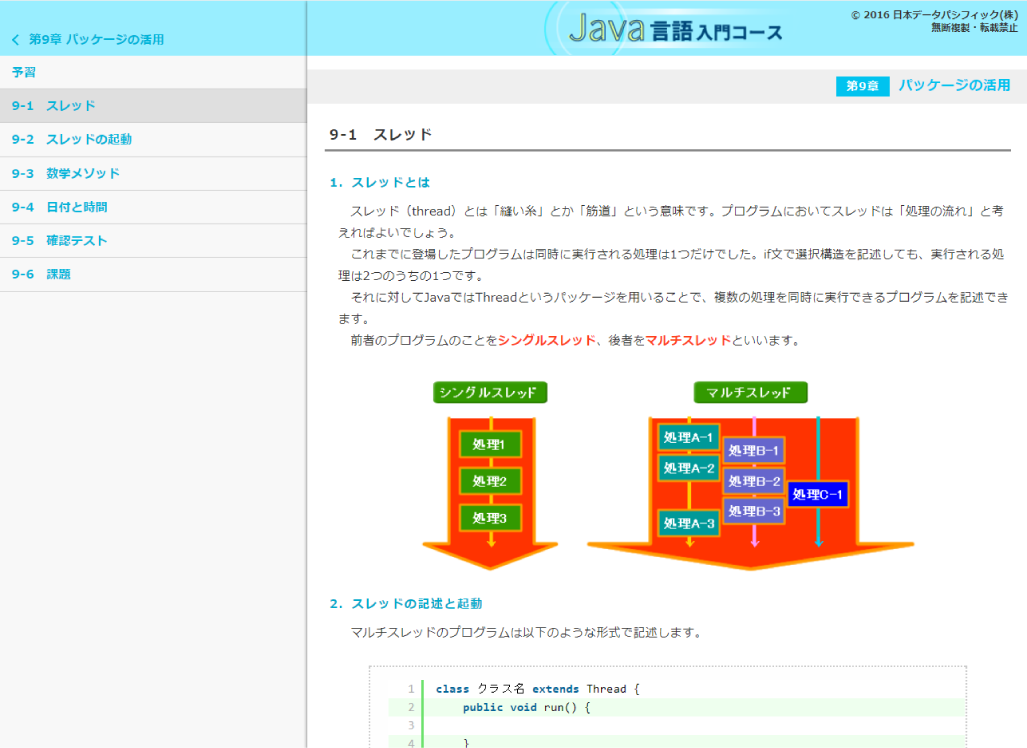 はじめてJavaに触れる人を対象とした教材で、プログラム作成における基本事項等を学習します。
