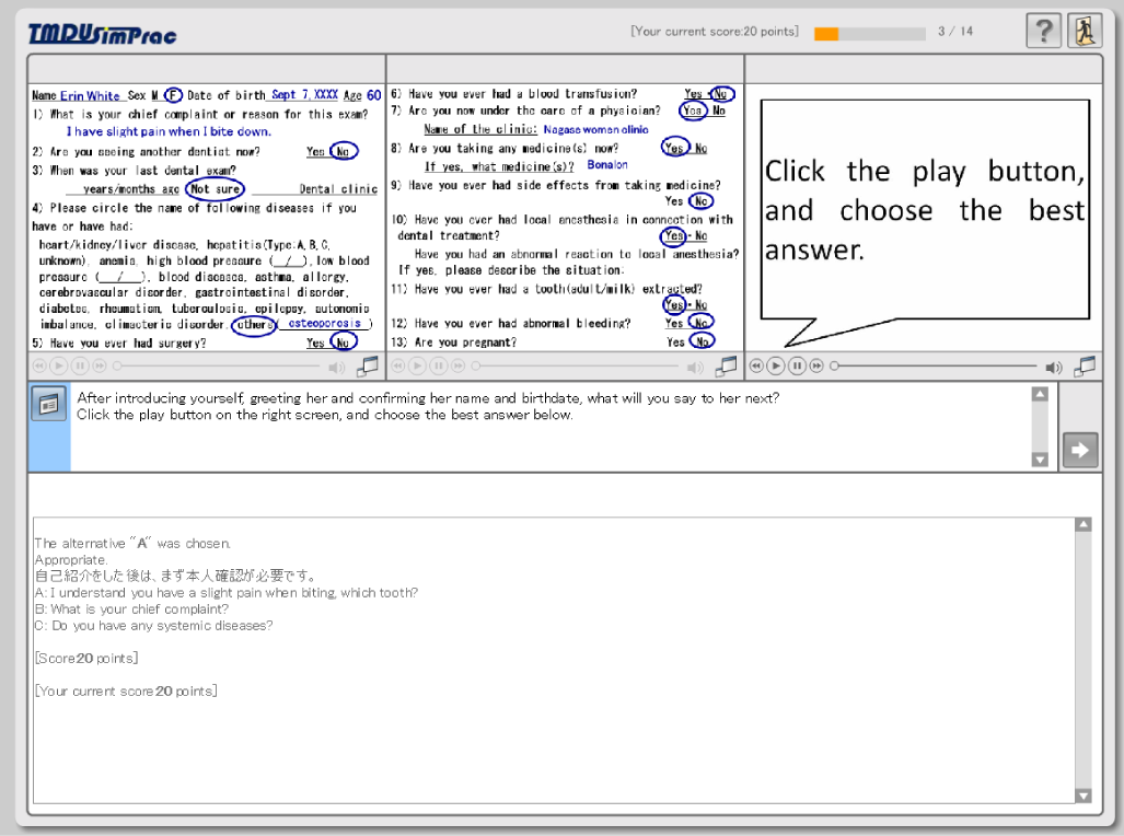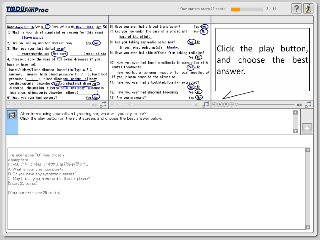 - 英語しか話せない患者が来院した想定での医療面接が体験できます。