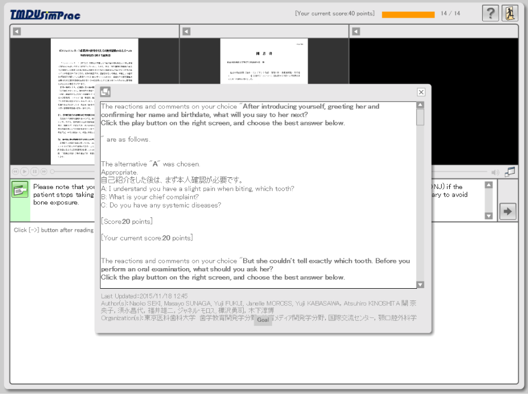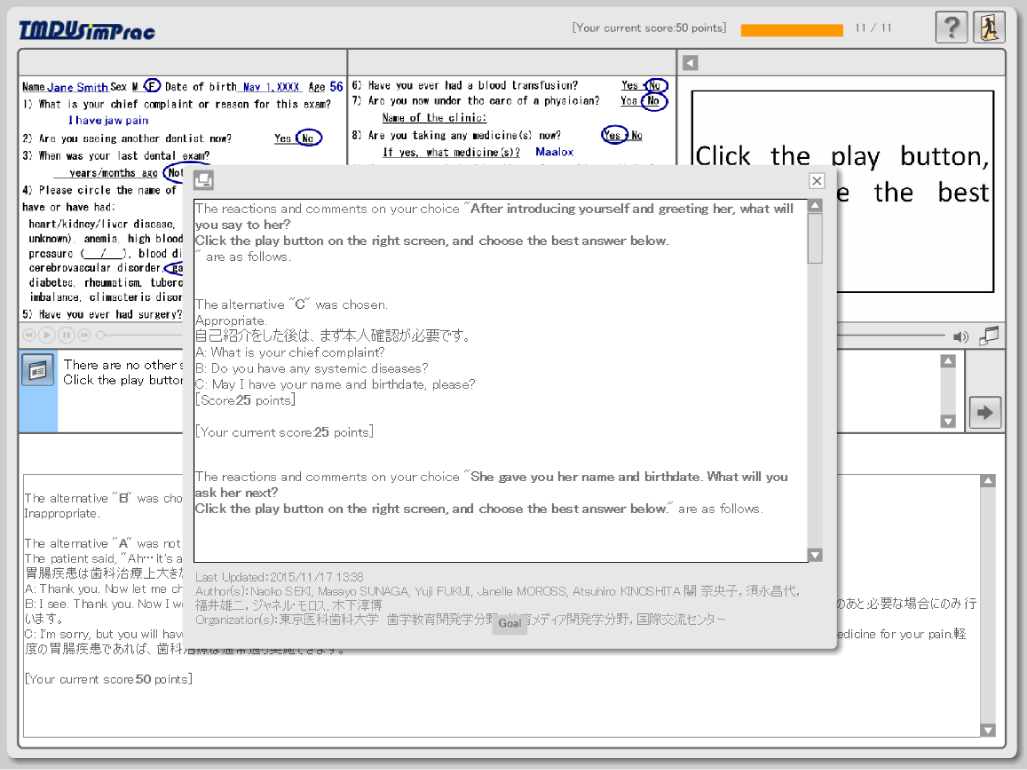 英語の問診トレーニング教材です。英語しか話せない患者が来院した場合を想定した学習教材です。(SCORM1.2準拠)