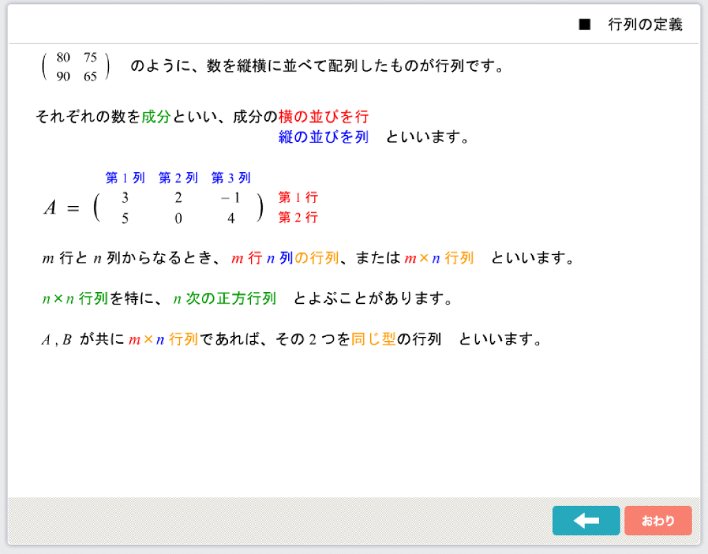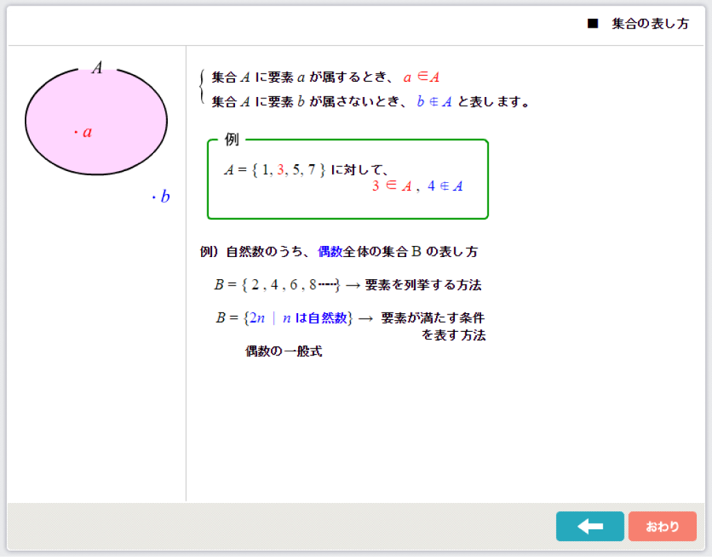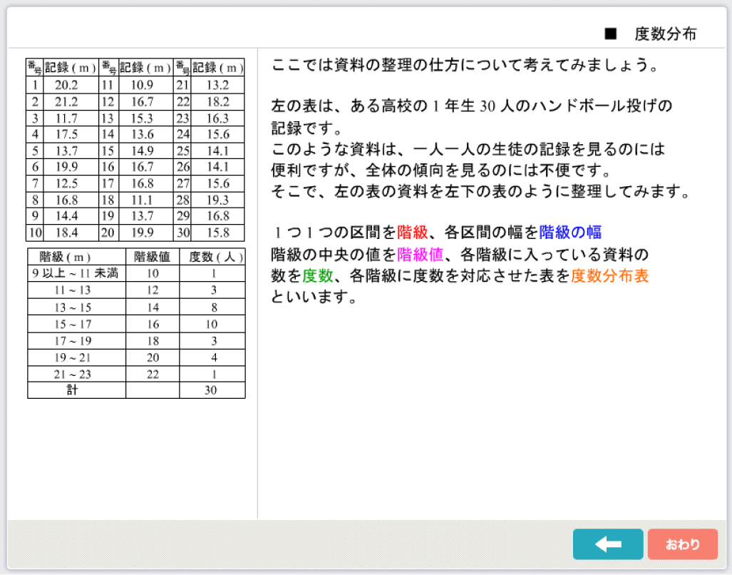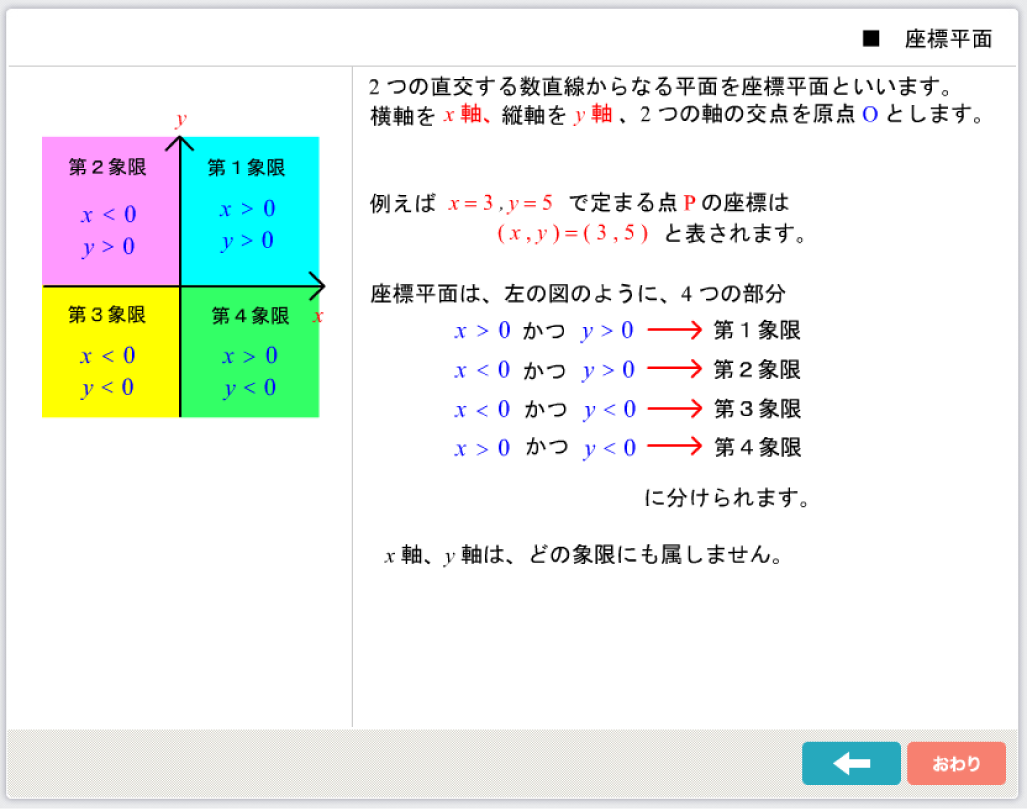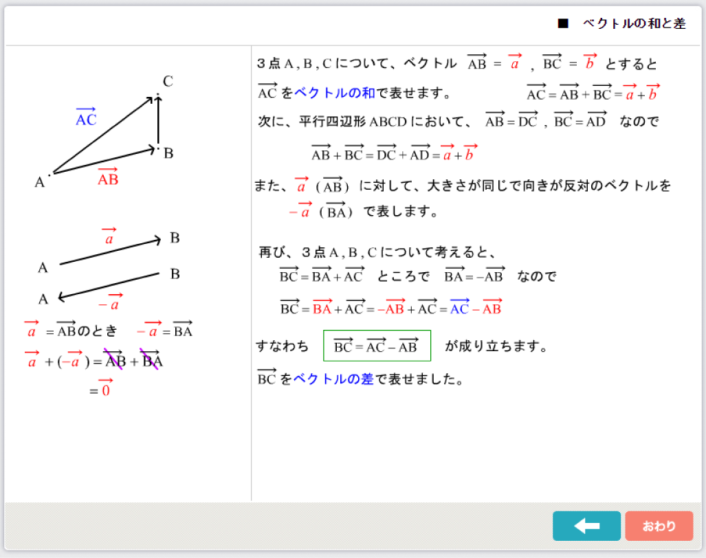 - 授業の板書を画面に再現するとともに、アニメーションを効果的に用いて視覚的にわかりやすく仕上げています。