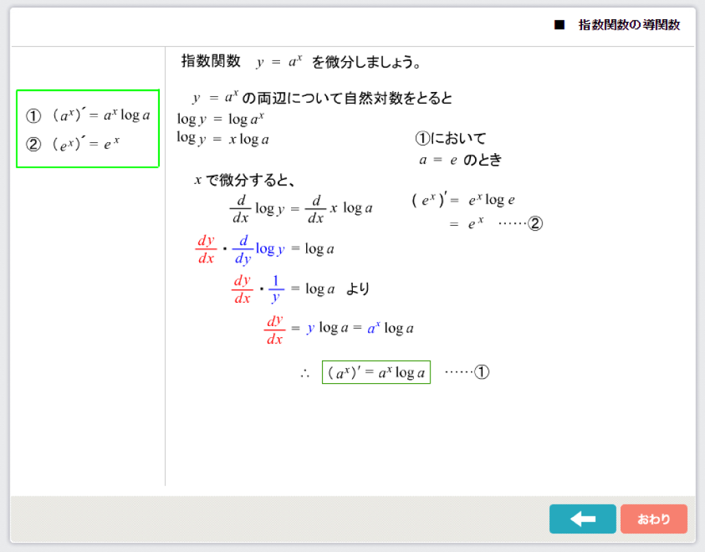 高校数学のほとんどすべての範囲を学習することができ、板書を見るイメージで自分のペースで学習を進められます。各単元に様々な形式の演習問題が用意されています。(SCORM1.2準拠)